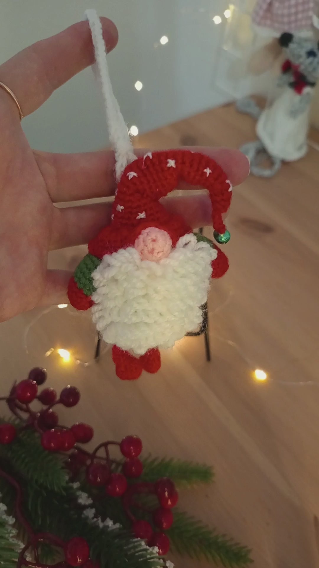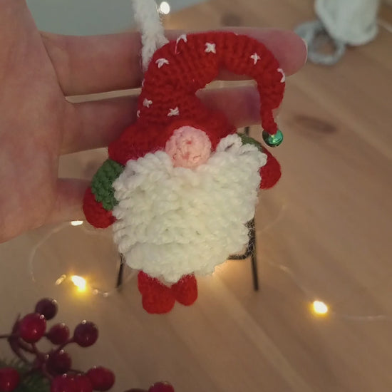 Bring festive cheer to your holiday décor with this handmade crochet Christmas gnome ornament.